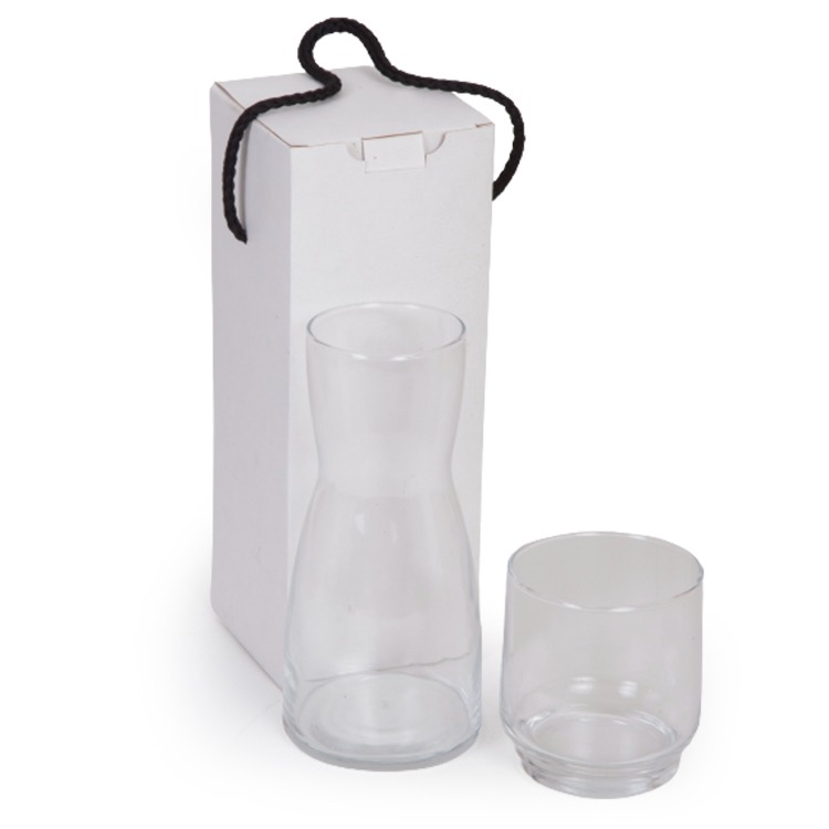 1 Moringa de vidro 500ml 7619 1 Copo de vidro 7504 1 Caixa corte e vinco em papel cartão 8.5x8.5x23cm / peso 400g F135/