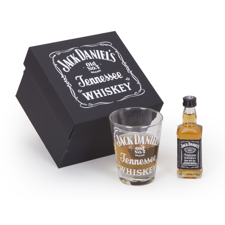 1 Miniatura Whiskey Jack Daniel´s 50ml 1 Copo personalizado 220ml 1 Caixa e berço corte e vinco em papel cartão Peso 0490g / 14x14x10cm whiskyminiatura
