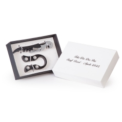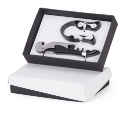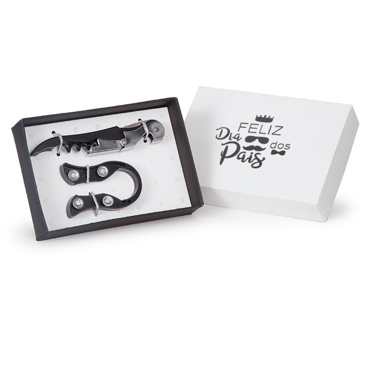 1 Saca rolhas dois estágios 1 Cortador de lacres 1 Caixa e berço corte e vinco em papel cartão 14x9.7x3cm / Peso 0.142g F94/T286