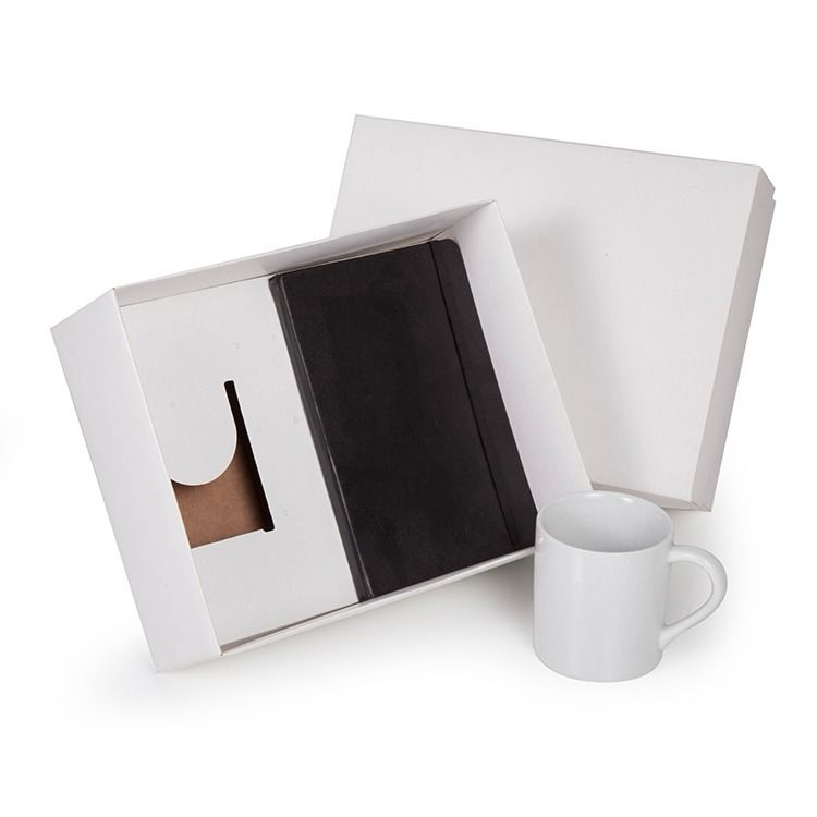 1 Caixa e berço multiuso corte e vinco em papel cartço FSC branca ou kraft certificado 400gr 28x22x10cm foto ilustrativa não acompanha moleskine elastico e peças no interior da caixa F45