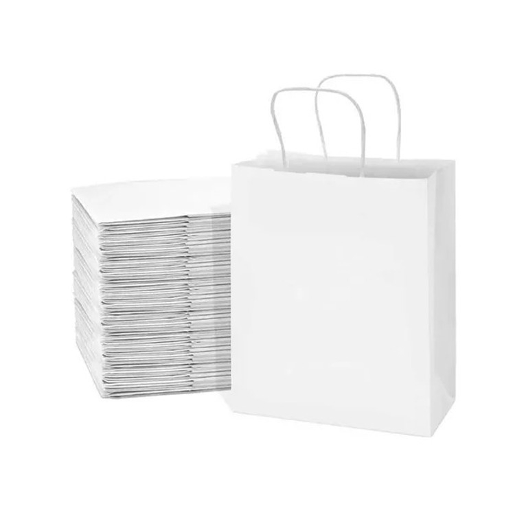 100 unidades Personalizada com sua logomarca em uma cor dos dois lados Sacola de papel branca 80gr 26.5x13x32cm Alça de Papel Torcido