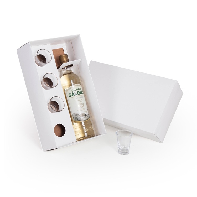 1 Cachaça Mineira Salinas Tradicional 700ml Armazenada 3 anos em toneis de balsamo. Graduação Alcolica 42% Vol. 4 Copos de vidro ole 60ml 1 Caixa e berço corte e vinco em papel cartão kraft 400gr Peso 1.800g /34x19x10cm Personalizamos com sua logomarca, consulte! CX CP50/T285/B236