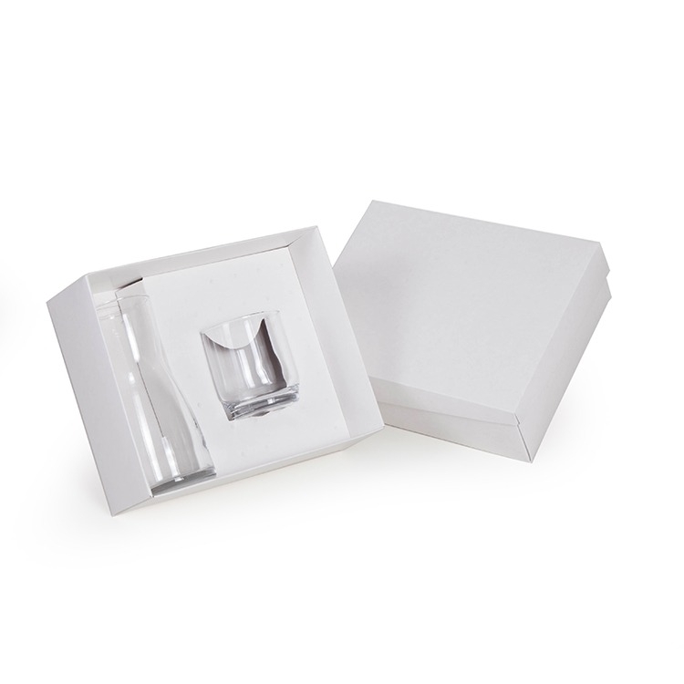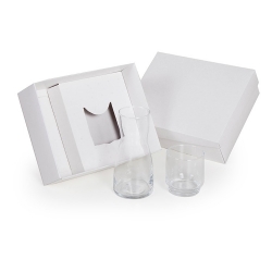 1 Moringa de vidro 500ml 7619 1 Copo de vidro 7504 1 Caixa e berço corte e vinco em papel cartão branco 360g 24x19.5x7cm / peso 600g CP22