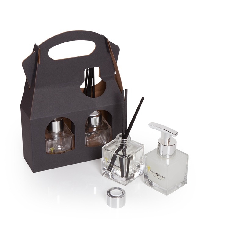 1 Porta Sabonete Líquido Vidro com aroma bambu 5x5x11.2cm 100ml 1 Difusor de vidro aroma bambu 5x5x8cm 4 Varetas de Fibra Algodão 1 Maleta corte e vinco em papel cartão preto 400gr Consulte personalização com sua logomarca! Peso 0.490g / 18x6.3x25.5cm altura F277 (3P/FL)