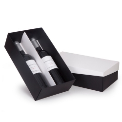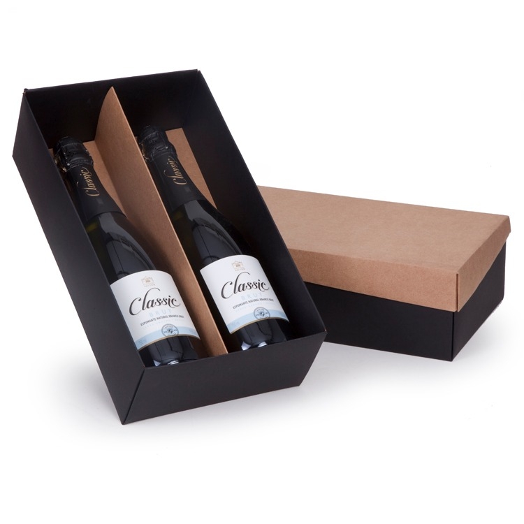 1 Caixa e berço corte e vinco em papel cartão preto 400gr e kraft 300gr 34x19x10cm Ideal para duas garrafas de e 750ml (foto ilustrativa) não acompanha bebida CXCHANDON750