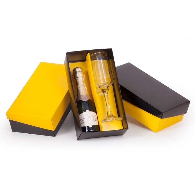 1 Caixa e berço corte e vinco em papel cartão 275gr Cores disponiveis : vermelho, verde, azul, laranja, rosa, marron, branco, kraft e amarelo. 23.5x13x7cm Berço desenvolvido para espumante de 187ml e taça 186ml SM Buffet Nadir (foto ilustrativa) não acompanha bebidas e taças baby01SE