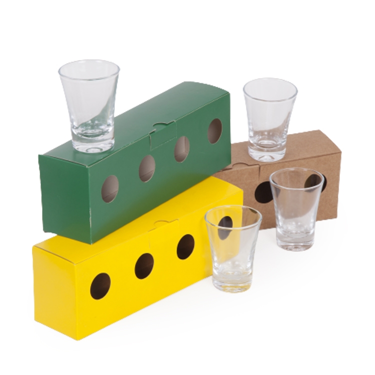 1 Caixa corte e vinco em papel cartão 240gr 21.5x5.5x7.5cm Diversas cores, consulte ! Para Copo Dose Olé 60ml - Nadir - 2304 Foto ilustrativa não acompanha os copos.