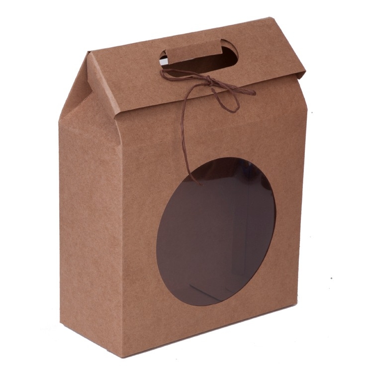 1 Maleta corte e vinco em papel cartão Kraft certificado FSE com visor 24x11x32.5cm maletase
