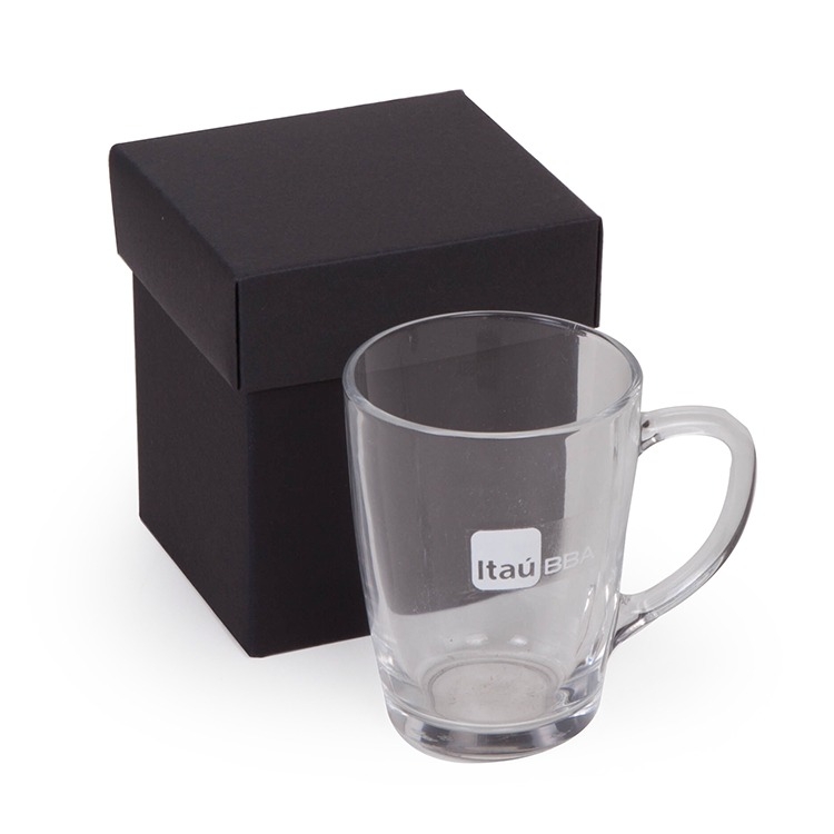 Caixa corte e vinco em papel cartão preto fosco 9.5x10x11.5cm Fundo : 420g Tampa : 200g (foto ilustrativa) não acompanha caneca Personalizamos com sua logomarca, consulte! F174 / 174b