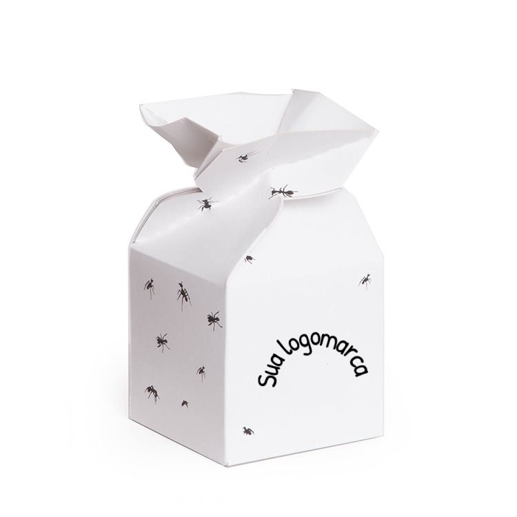 1 Caixa corte e vinco em papel cartão customizado formigas 3 Bombons Ouro Branco Personalizamos com sua logomarca, consulte! Peso 0,080g / 6.5x6.5x11cm F147B