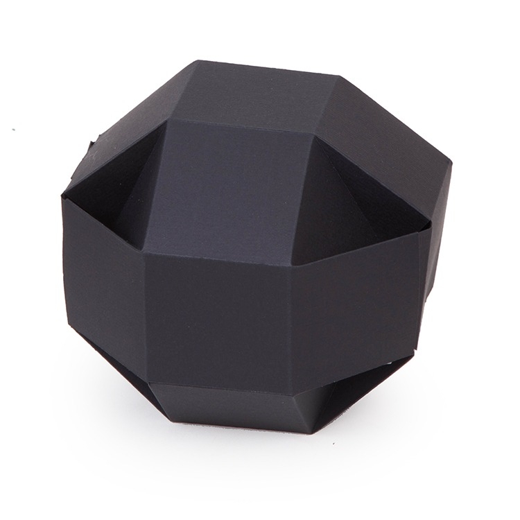 Caixa bola corte e vinco em papel cartão preto 220gr 16.5x16.5cm