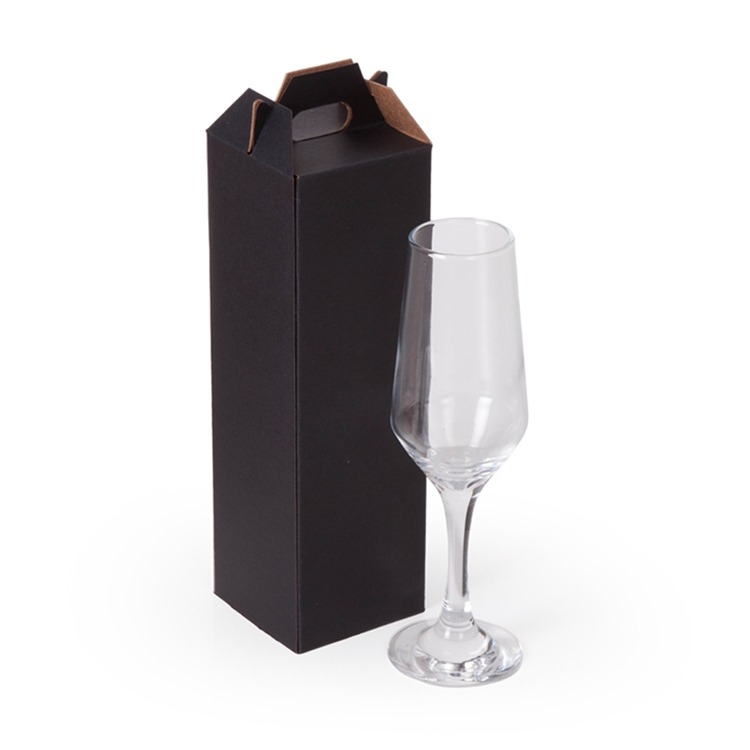 1 Caixa corte e vinco em papel cartão preto 400gr 26x6x6cm Ideal para taças 186ml (foto ilustrativa) não acompanha taça Personalizamos com sua logomarca, consulte! F109