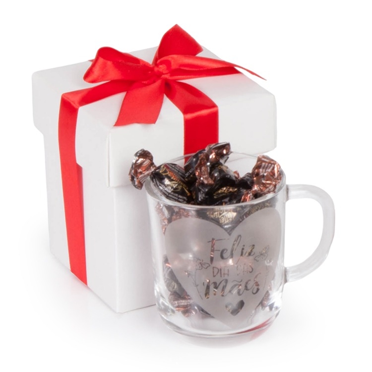 1 Caneca de vidro Aspen 300ml (5909) 11 x 8 x 8,9 cm 15 unidades de balas caramelo Toffe 1 Caixa corte e vinco em papel cartão branco 360gr e laço Personalizamos com sua logomarca, consulte! 9.5x10x11.5cm / Peso 410g F174b T174