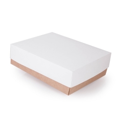 1 Caixa corte e vinco em papel cartão kraft fundo 400gr tampa branca 360g 34x28x9cm Tampa com aba larga de 7cm