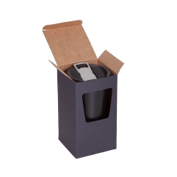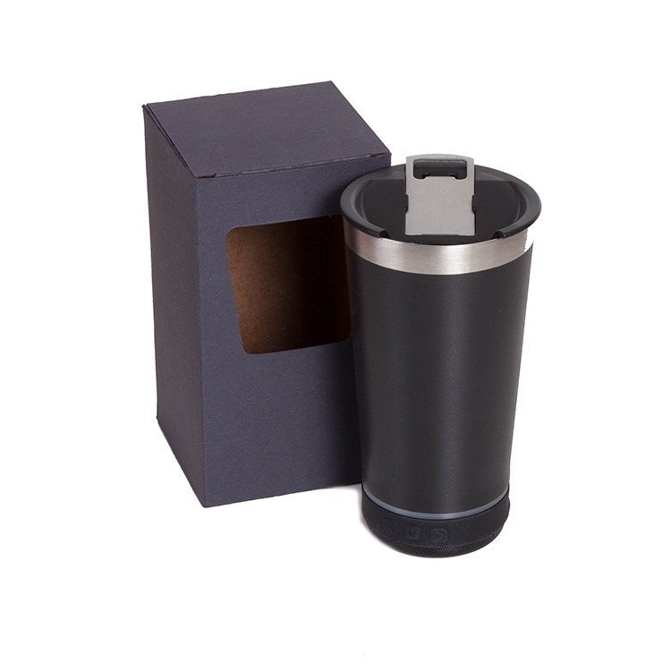 Caixa corte e vinco com visor em papel cartão preto 400gr para Copo Térmico Caixa De Som Bluetooth 9.8x9.8x18cm Foto ilustrativa não acompanha o copo Stanley 473ml F525