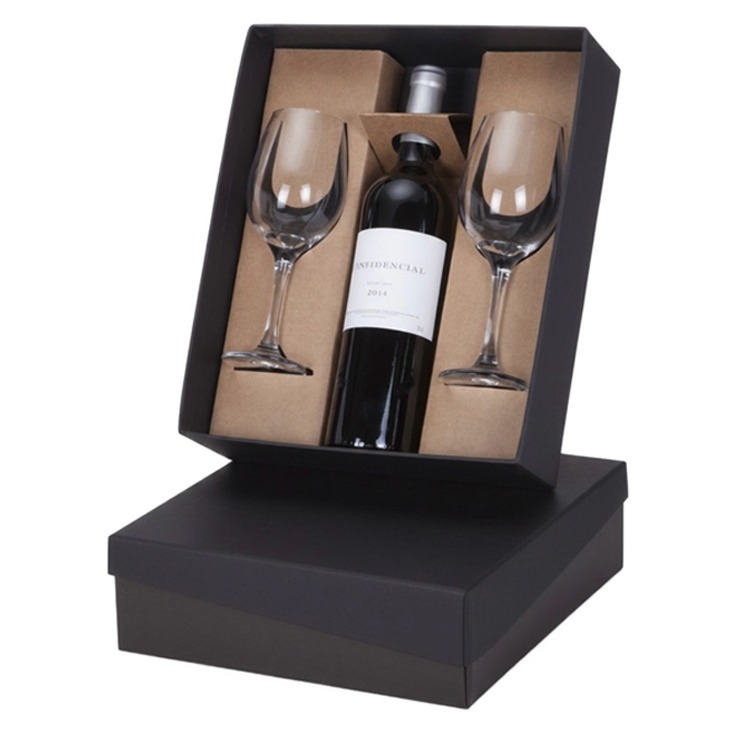 1 Caixa e berço corte e vinco em papel cartão preto fundo 400gr tampa 320gr e kraft 400gr 34x28x9cm Ideal para garrafas de 750ml e Taças de vidro Barone 385ml Nadir figueiredo) cod 7156 (foto ilustrativa) não acompanha bebidas e taças F48.9 / T283 / b263 CXVH2TAÇAS