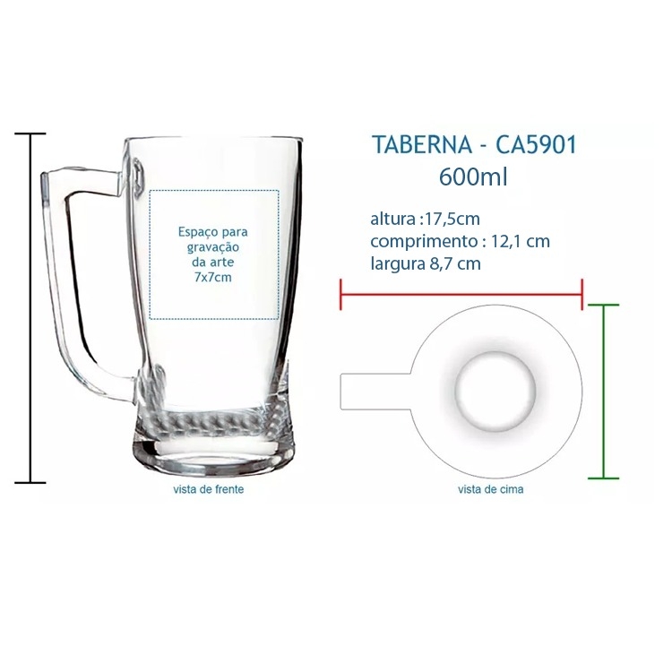 Caneca de vidro Taberna para cereveja 600ml (5902) Personalizamos com sua logomarca, consulte!