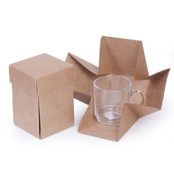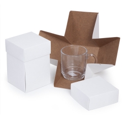 1 Caneca de vidro Aspen 300ml (5909) 11 x 8 x 8,9 cm 1 Caixa corte e vinco em papel cartão kraft ou branca 360gr com laço de cetim Peso 0,152g / 9,3x9,3x14cm.
