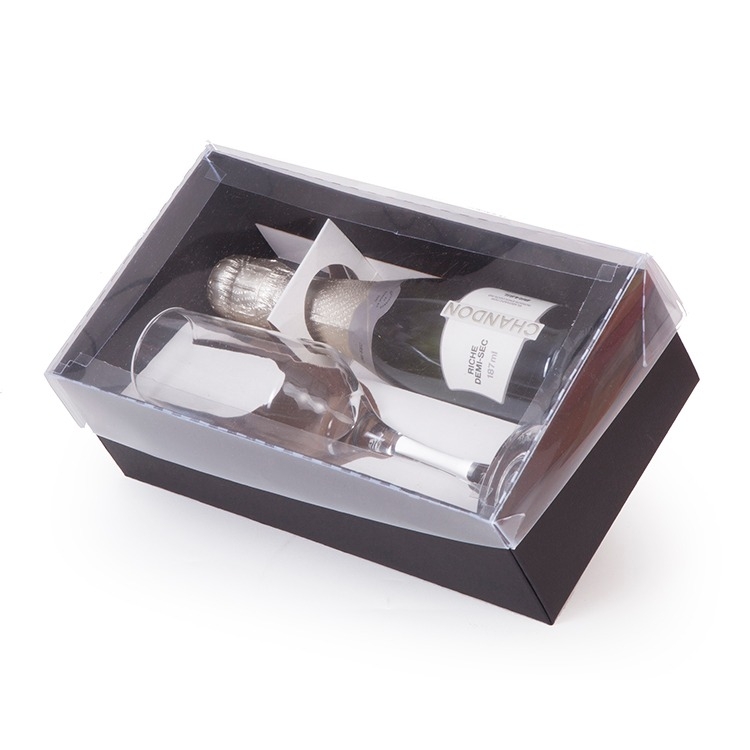 1 Caixa corte e vinco em papel cartão preto 1 Berço corte e vinco em papel cartão branco 1 Tampa transparente em PVC Cristal 23.5x13x7cm Berço desenvolvido para taça espumante altura 20 boca 4 pé 6,2 modelo J708 Nadir Figueiredo (foto ilustrativa) não acompanha bebida e taça baby01SE