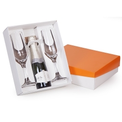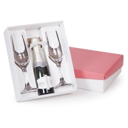 1 Caixa e berço corte e vinco em papel cartão branco 360g , tampa 200gr 24x19.5x7cm Berço desenvolvido para espumante de 187ml e taça 186ml SM Buffet Nadir (foto ilustrativa) não acompanha bebidas e taças cp22se baby02SE