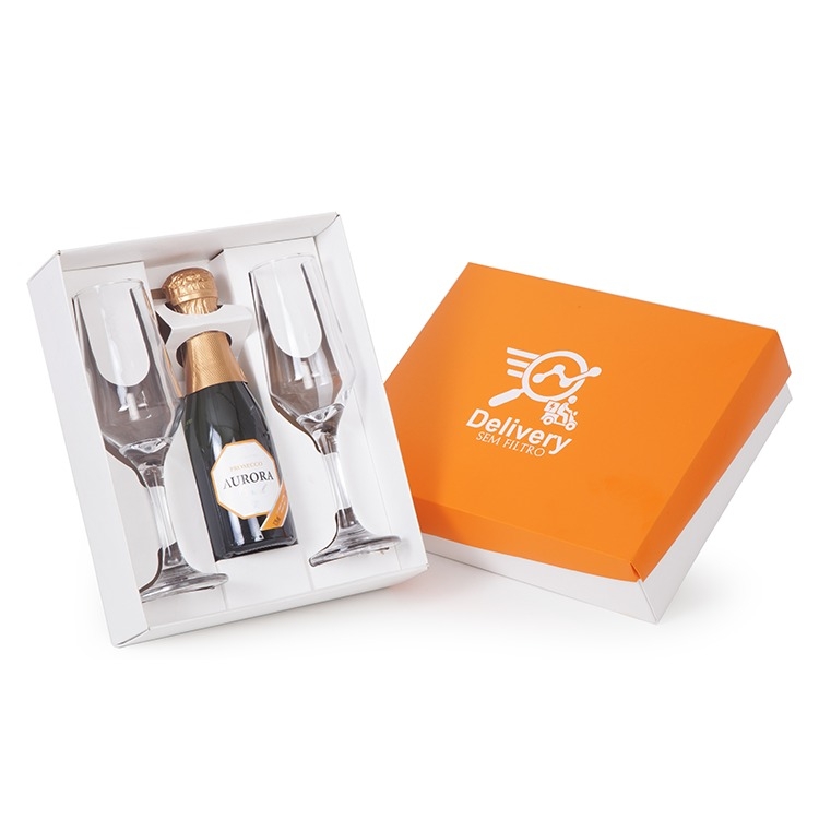 1 Espumante Prosecco Aurora Boreal 187ml 2 Taças Buffet de vidro para Champagne 186ml 1 Caixa e berço corte e vinco em papel cartão 300gr tampa 225gr 24x19.5x7cm / peso 0.950g F169/169B/49/246 Personalizamos com sua logomarca,consulte ! aurora2