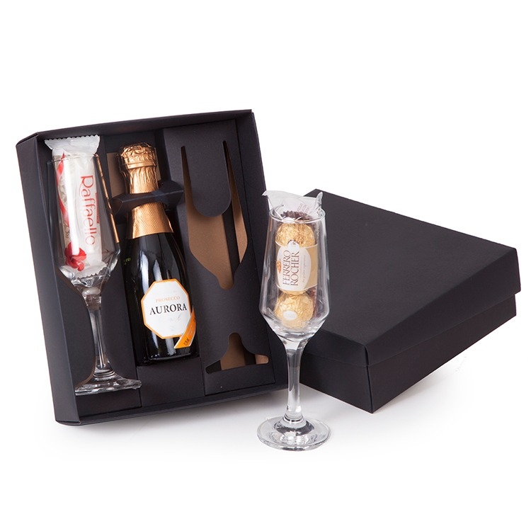 1 Espumante Prosecco Aurora Boreal 187ml 2 Taças Buffet de vidro para Champagne 186ml 3 unid Bombons Ferrero Rocher 30g 3 unid Raffaello 30g 1 Caixa e berço corte e vinco em papel cartão 400gr tampa 200gr 24x19.5x7cm / peso 1kg F169/169B/49/246 Personalizamos com sua logomarca,consulte ! aurorabombom