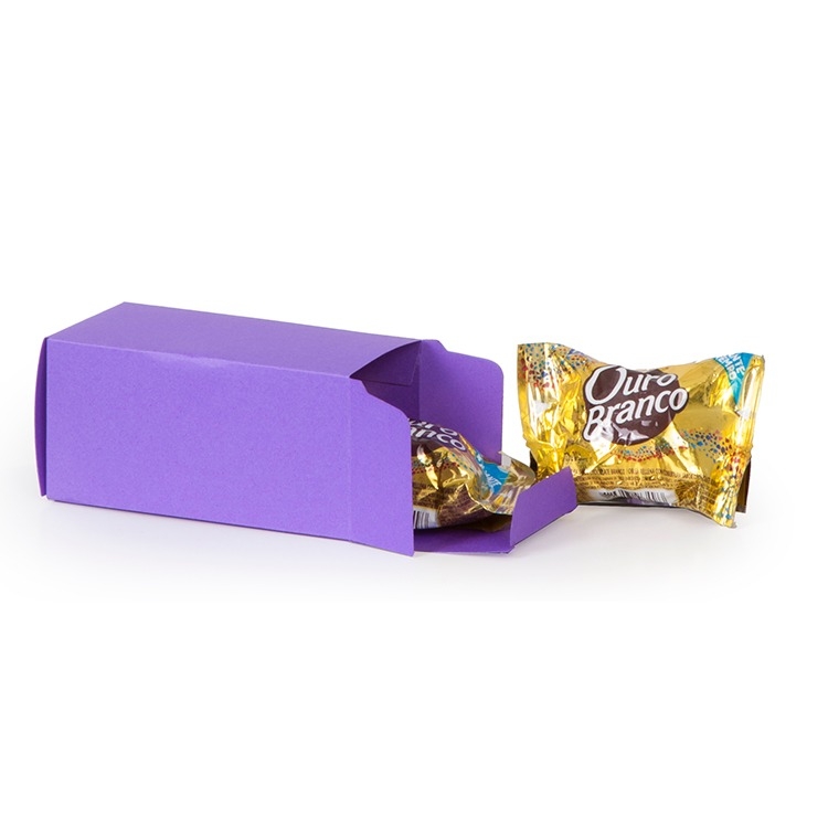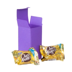 1 Caixa corte e vinco em papel cartão lilas 225g 2 Bombons Ouro Branco Varias opções de cores consulte! medida 10x5x5cm / peso