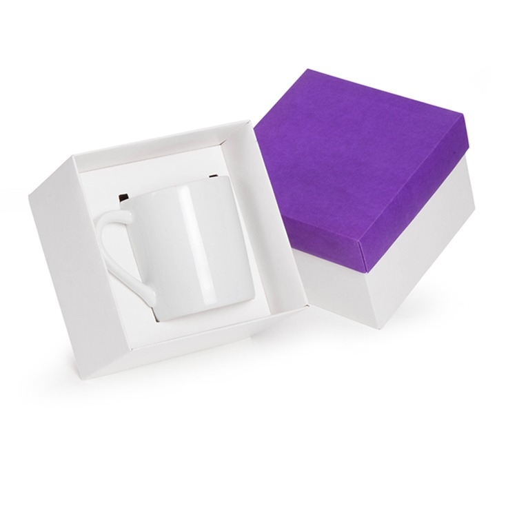 1 Caixa e berço corte e vinco em papel cartão branco 360gr e Lilás 200gr 14x14x10cm ideal para canecas 9.5cm altura x 8cm de largura (foto ilustrativa) não acompanha caneca F74/ cxcaneca