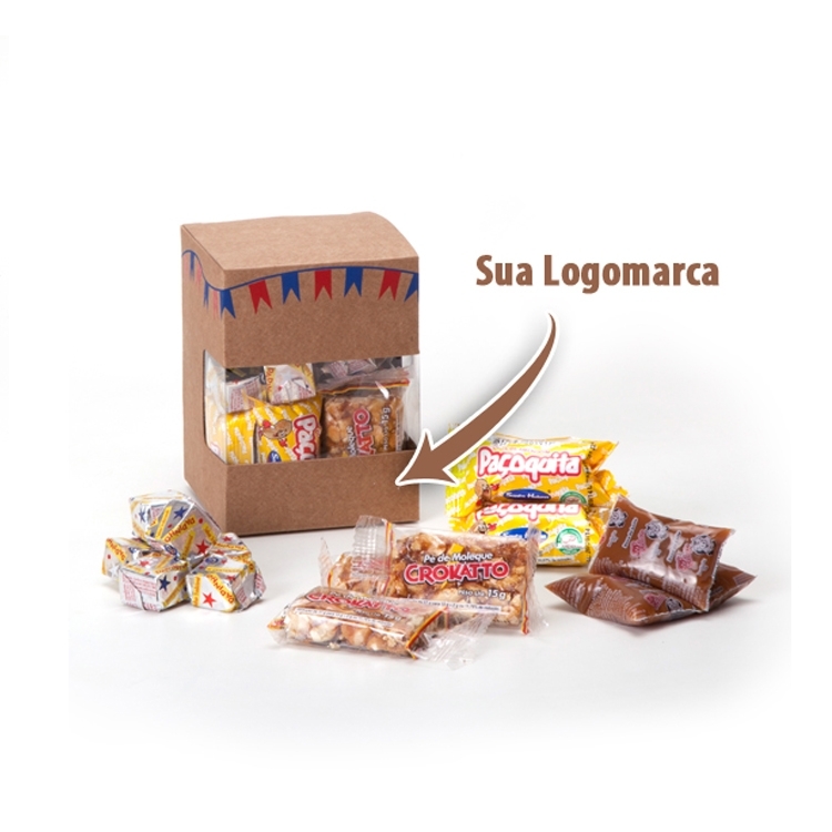 Caixa corte e vinco em papel cartão kraft medidas 8x8x11cm (foto ilustrativa) não acompanha alimentos Personalizamos com sua logomarca, consulte! F132