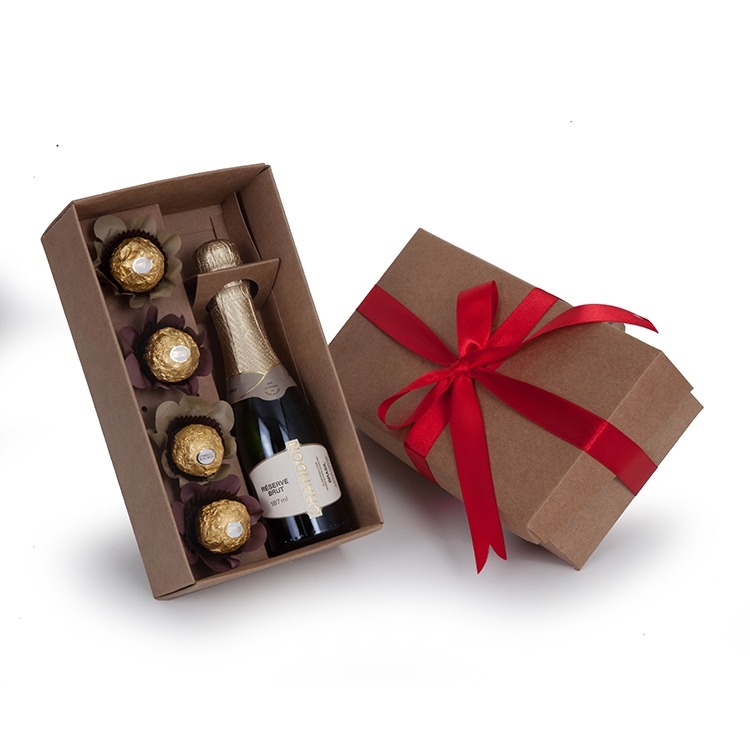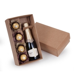 1 Espumante Chandon 187ml 4 Unid Bombons Ferrero Rocher 1 Caixa e berço corte e vinco em papel cartão kraft 400gr 23.5x13x7cm // Peso 0.624gr chandonferrero chandonbombom 213 / 502 / 502A