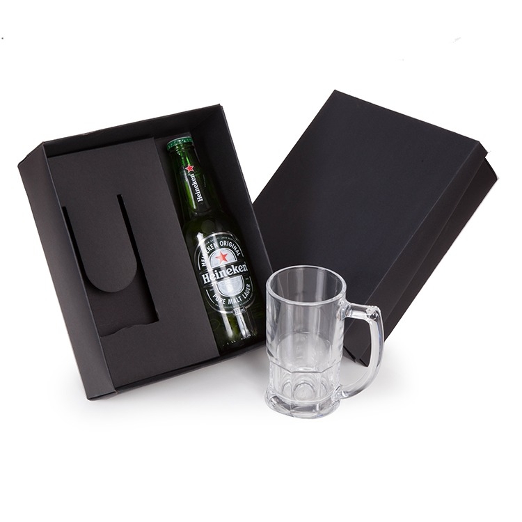1 Cerveja Heineken 330ml 1 Caneca Cerveja Bristol 340Ml (Ref.5911) Altura 13,3 comprimento 11,4 largura 7,4 1 Caixa corte e vinco em papel cartão preto 400gr Personalizamos com sua logomarca, consulte! 24x19.5x8.5cm / Peso 1.190kg B527
