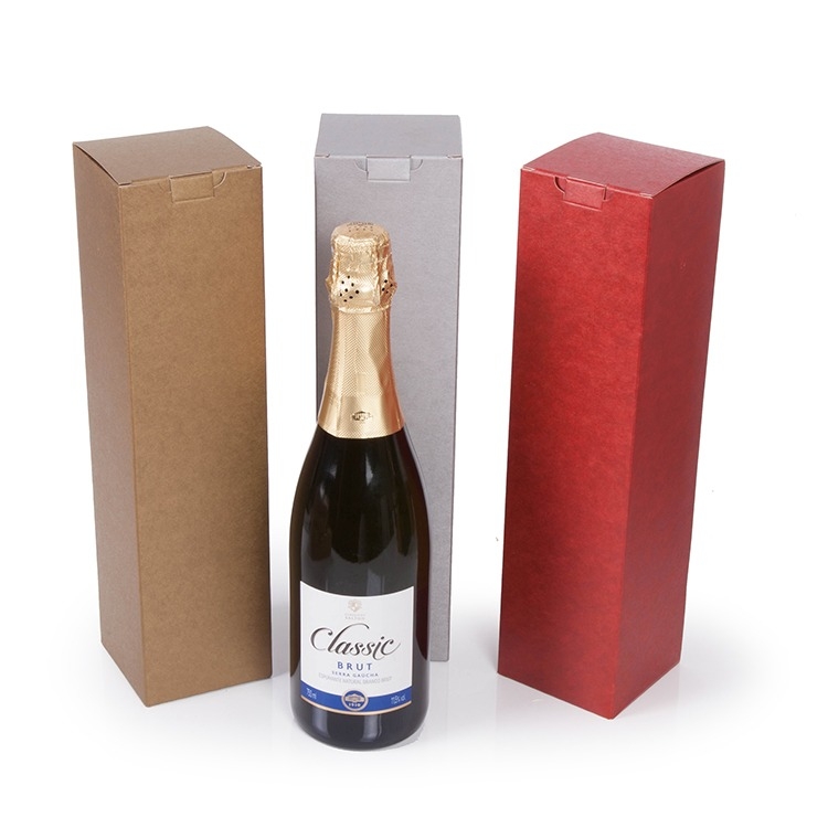 Caixa corte e vinco em papel cartão 400gr sem alça 33.7x8.2x8.2cm Cores disponíveis : prata , dourada e vermelha. (foto ilustrativa) não acompanha bebida cartuxo