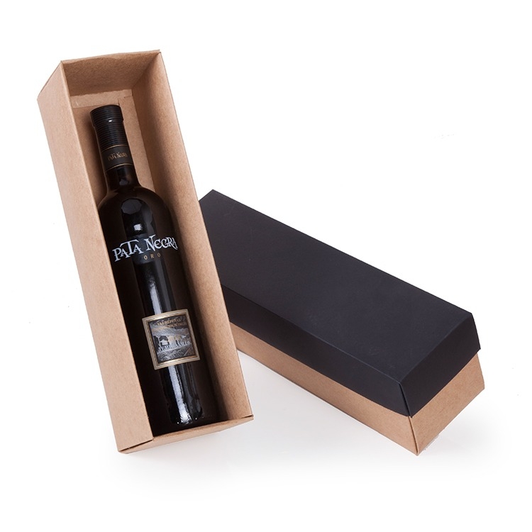 1 Caixa corte e vinco em papel cartão kraft 400gr tampa preta 400gr 34x9.5x10cm Obs: ideal para garrafas tradicionais de 750ml (foto ilustrativa) não acompanha garrafa e palha cx1gfavh