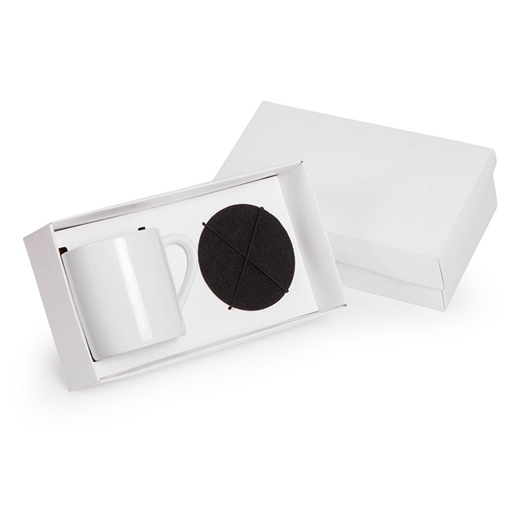Caixa e berço corte e vinco em papel cartão branco 360gr 23.5x13x7cm (foto ilustrativa) não acompanha caneca, porta copo, elástico e fita de cetim