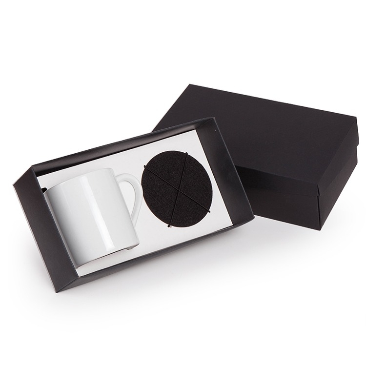 Caixa e berço corte e vinco em papel cartão preto e branco 320g 23.5x13x7cm (foto ilustrativa) não acompanha caneca, porta copo, elástico e fita de cetim