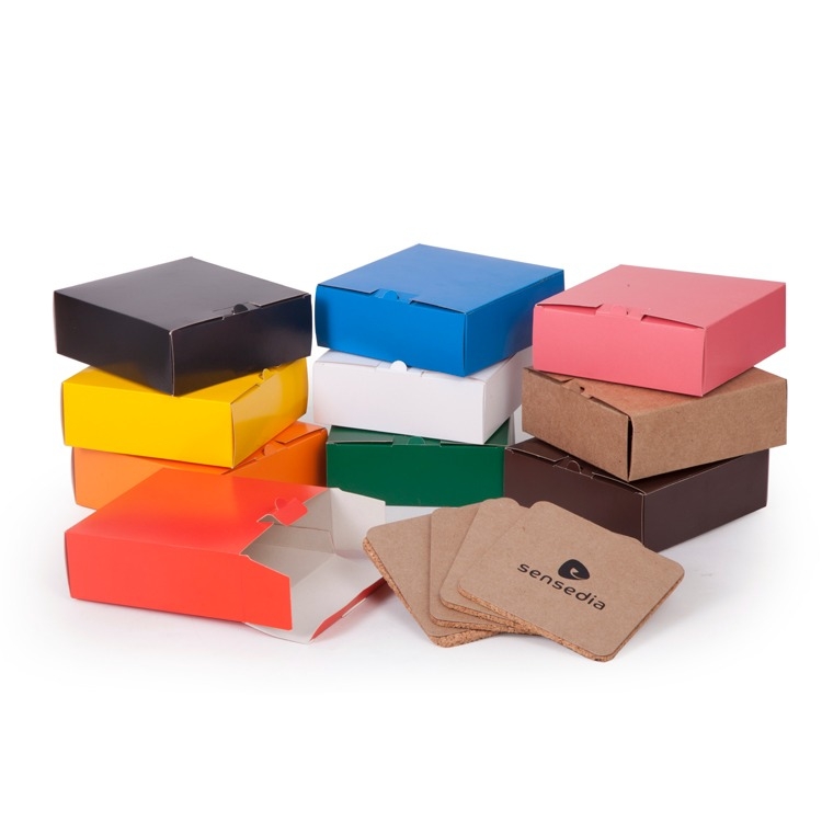 4 Porta copos de cortiça e kraft 10.5x10.5 1 Caixa corte e vinco em papel cartão 275gr. personalizamos com sua logomarca, consulte! 10.7x10.7x3cm / Peso 0.080g F100b