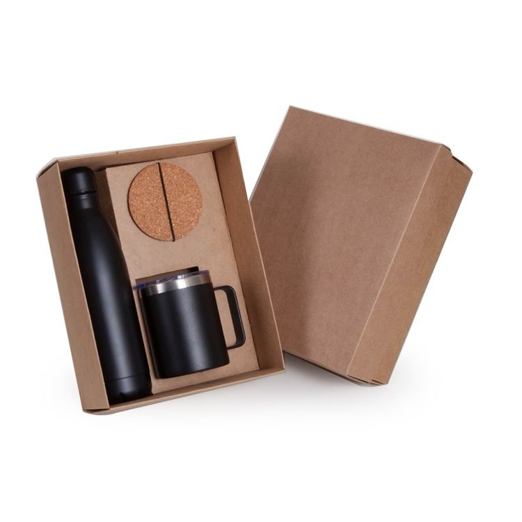Caixa e berço multiuso corte e vinco em papel cartão kraft 400g 28x22x10cm Berço desenvolvido para caneca de aluminio 11.2cm altura 8.5cm de boca. (foto ilustrativa) só embalagem não acompanha produtos.