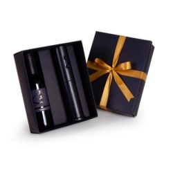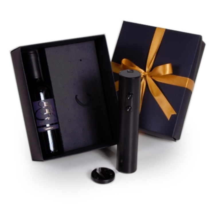 Caixa e berço corte e vinco em papel cartão preto 400gr 27X24X7CM Observação ; não acompanha vinho, fita de cetim, elástico e abridor.