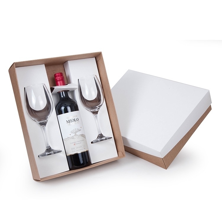 Caixa e berço corte e vinco em papel cartão kraft e branco 400g 34x28x9cm Ideal para garrafa 750ml e 2 Taças de vidro Barone 385ML (7156) (foto ilustrativa) não acompanha bebidas e taças b263 CXVH2TAÇAS