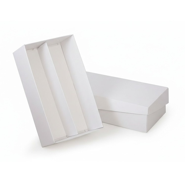 Caixa e divisória corte e vinco em papel cartão branco 360gr 23.5x13x7cm f168/168b/25