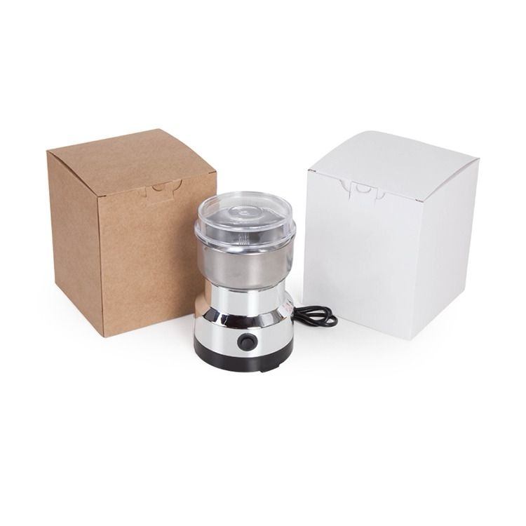 1 Moedor de café capacidade 50g 16cm altura 1 Caixa corte e vinco em papel cartão kraft ou branco 360gr 13.5x13.5x16,5cm Peso 0.500g Personalizamos com sua logomarca, consulte! F72