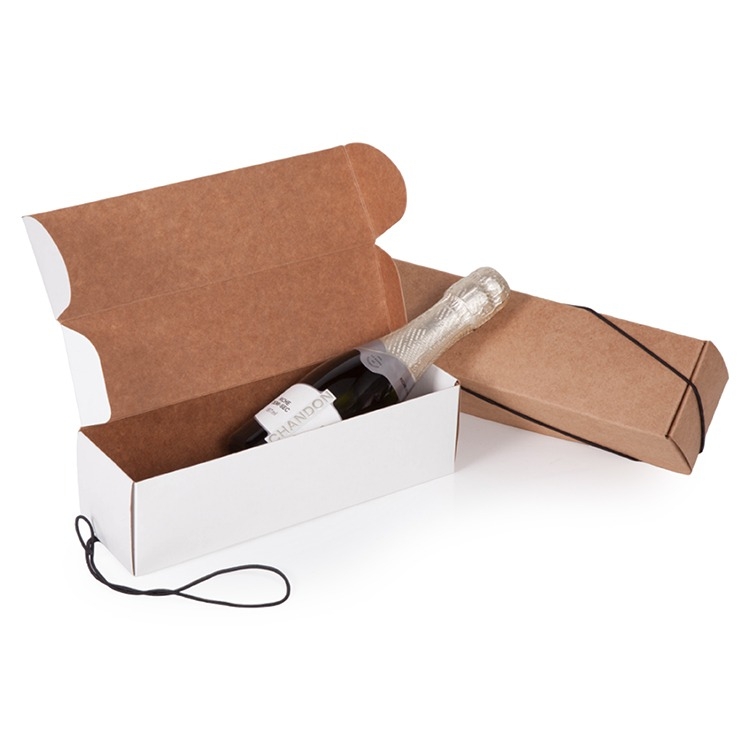 Caixa corte e vinco em papel cartão branco ou kraft com elástico preto dimensões 22.5x6.5x6.5cm ideal para garrafas 187 ml (foto ilustrativa) não acompanha bebida Cartuxo F524 cxchandonbaby