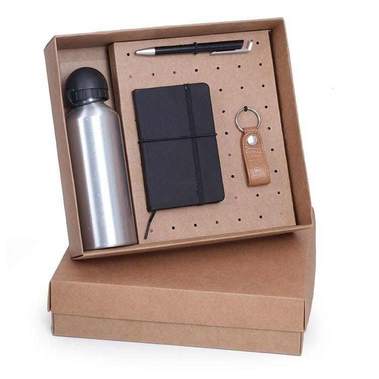 Caixa corte e vinco em papel cartão FSC certificado kraft ou branco 360gr 27X24X7CM 1 Berço corte e vinco em papel cartão FSC multiuso 19x23.5 para fixação de peças com elástico. Espaço para : 1 squeeze, moleskine e outros objetos a sua escolha OBS: preço somente da embalagens foto ilustrativa 266b/266/202