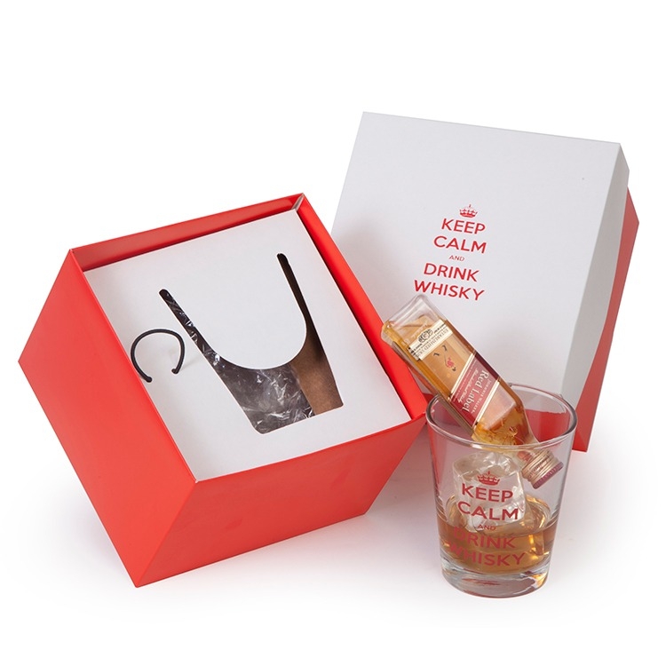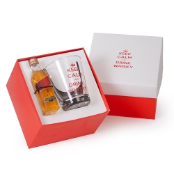 1 Whisky Johnnie Walker Red label 50ml 1 Copo de vidro cônica old fashioned 220ml 7101 1 Caixa e berço corte e vinco em papel cartão 14x14x10cm / Peso 0.330g F259/259B/02B