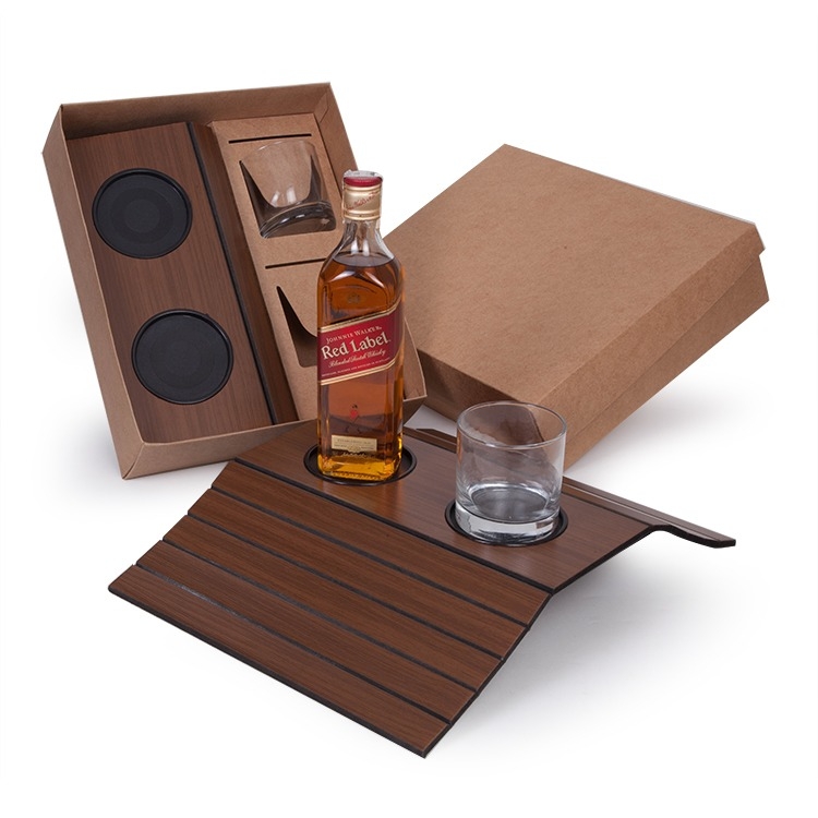 1 Whisky Johnnie Walker Red Label 500ml 1 Porta copos/taças de sofá (MDF) 2 Copos rocks de vidro 310ml (J255) 1 Caixa corte e vinco em papel cartão kraft e fundo 400gr tampa 180gr 34x28x9cm / peso 2.320kg Personalizamos com sua logomarca, consulte!
