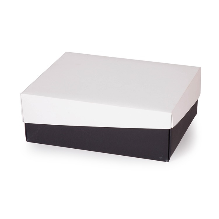 Caixa corte e vinco em papel cartão preto e branco 28x22x10cm Fundo 400gr Tampa 360gr F45