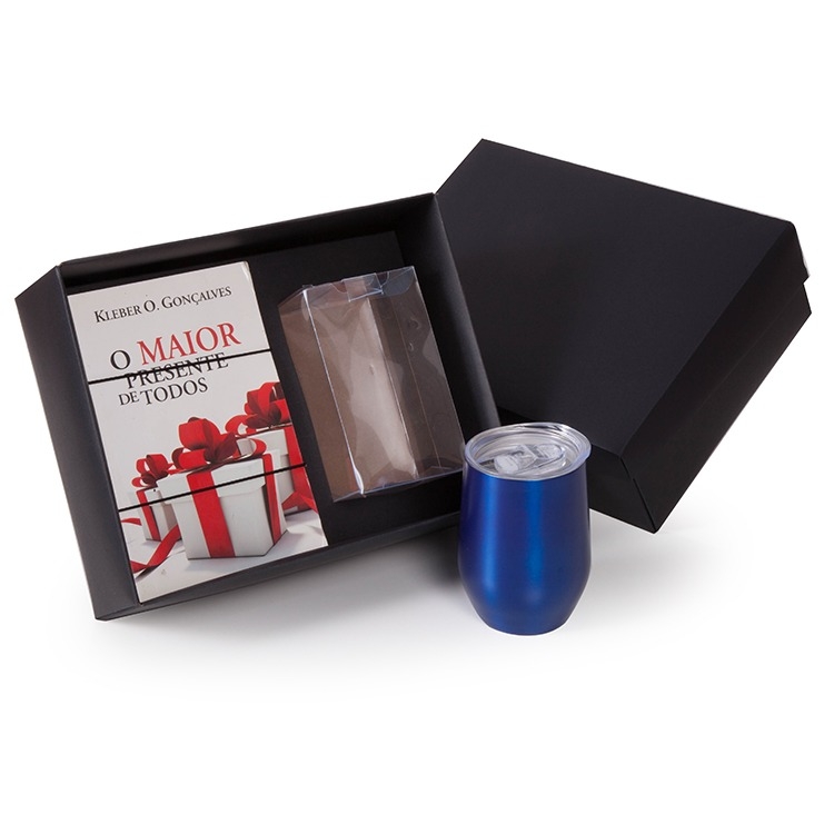 1 Caixa e berço corte e vinco em papel cartão preto fundo e berço 400g tampa 200g 28x22x10cm (foto ilustrativa) não acompanha livro 14x21cm e copo cuia