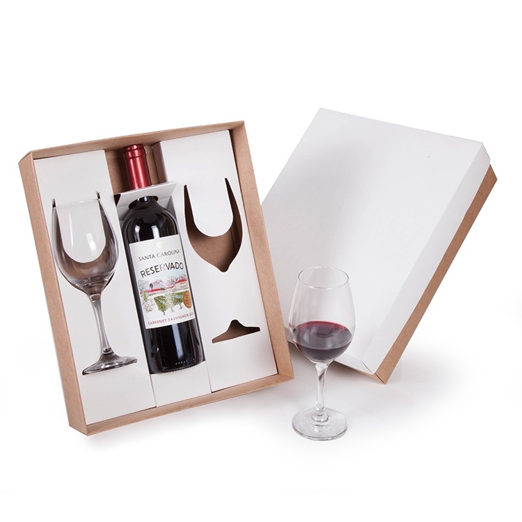Caixa e berço corte e vinco em papel cartão kraft 400gr e branco 360g 34x28x9cm Ideal para garrafa 750ml e 2 Taças de vidro Barone 385ML (7156) (foto ilustrativa) não acompanha bebidas e taças b263 CXVH2TAÇAS