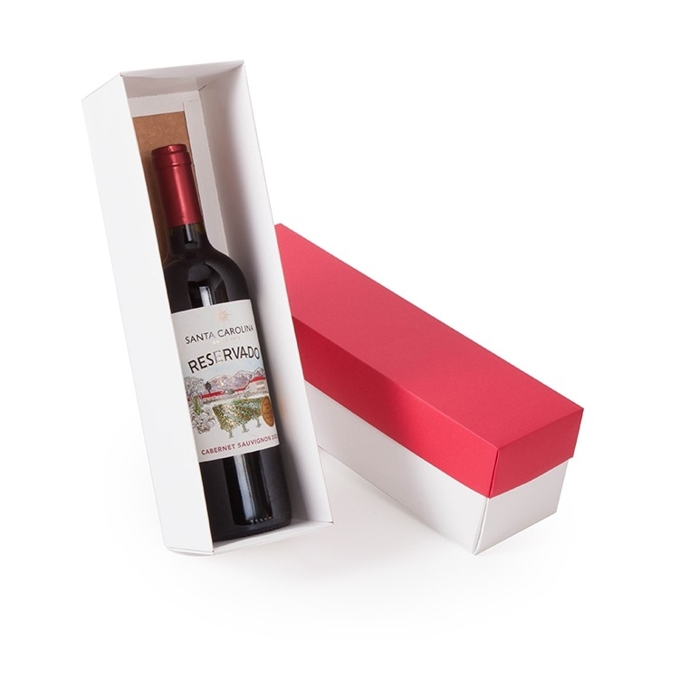 1 Caixa corte e vinco em papel cartão branco 360gr tampa preta 400gr 34x9.5x10cm Obs: ideal para garrafas tradicionais de 750ml (foto ilustrativa) não acompanha garrafa e palha cx1gfavh