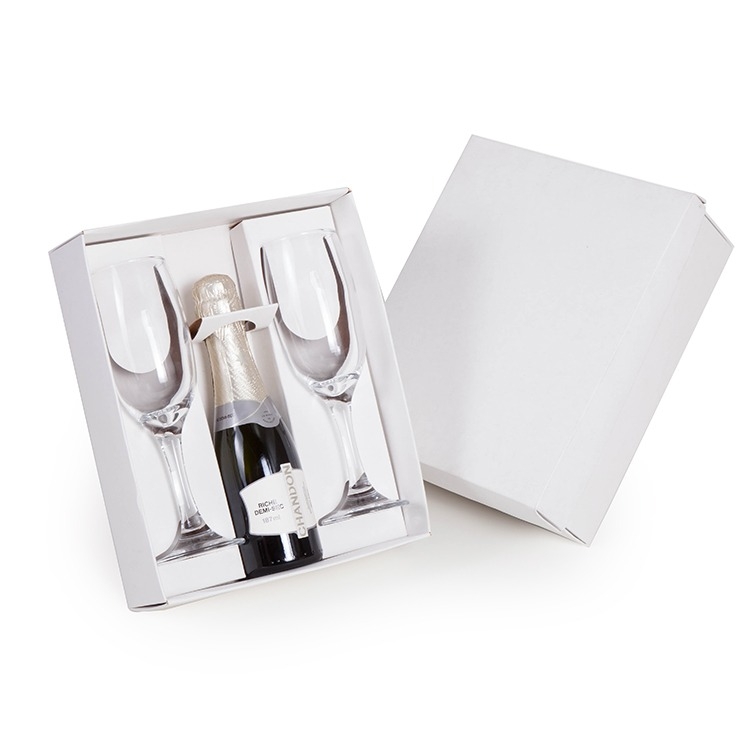 1 Espumante Chandon Reserve 187ml 2 Taças Windsor de vidro 210ml (7828) 1 Caixa e berço corte e vinco em papel cartão branco 360gr 24x19.5x7cm / peso 0.950g F169/169B/49/246 BABY2